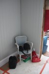 Sen började vi även att riva ut lite på toaletten. Dock har vi bara tagit ut badkaret, och lyft ner varmvattentanken som satt på väggen. Badkaret är ut buret också. Man kunde känna att govet inte var något vidare där badkaret stått. Så det ska bli intressant att lyfta på golvmattan och se hur det egentligen ser ut där inunder. Men det får vi ta nästa gång som vi är där och jobbar.
