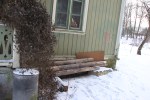 Igår började vi med att riva upp scenen i skolsalen. Vi började där för att vi ska sätta in en ny dörr i skolsalen, som ska gå ut på en ny veranda som ska byggas på baksidan. Liknande den som är på framsidan. När vi började riva loss golvplankorna hittade vi, vitt ludd. Alltid kul. Men vi har ju ändå bestämt att allt golv i skolsalen ska rivas upp och bytas ut, då det är dåligt och har sjunkt ihop på mitten.