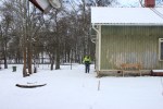Vi rev även ut en massa gamla element, och gamla dåliga rör. Erik, Jimmy och Oskar rev ner masoniten som satt på väggarna i den lilla hallen på framsidan. Den som lärarinnan använde. Det blev jätte fint där, med pärlspot i taket och på väggarna. Och där sitter ju alla gamla lister och foder kvar med.