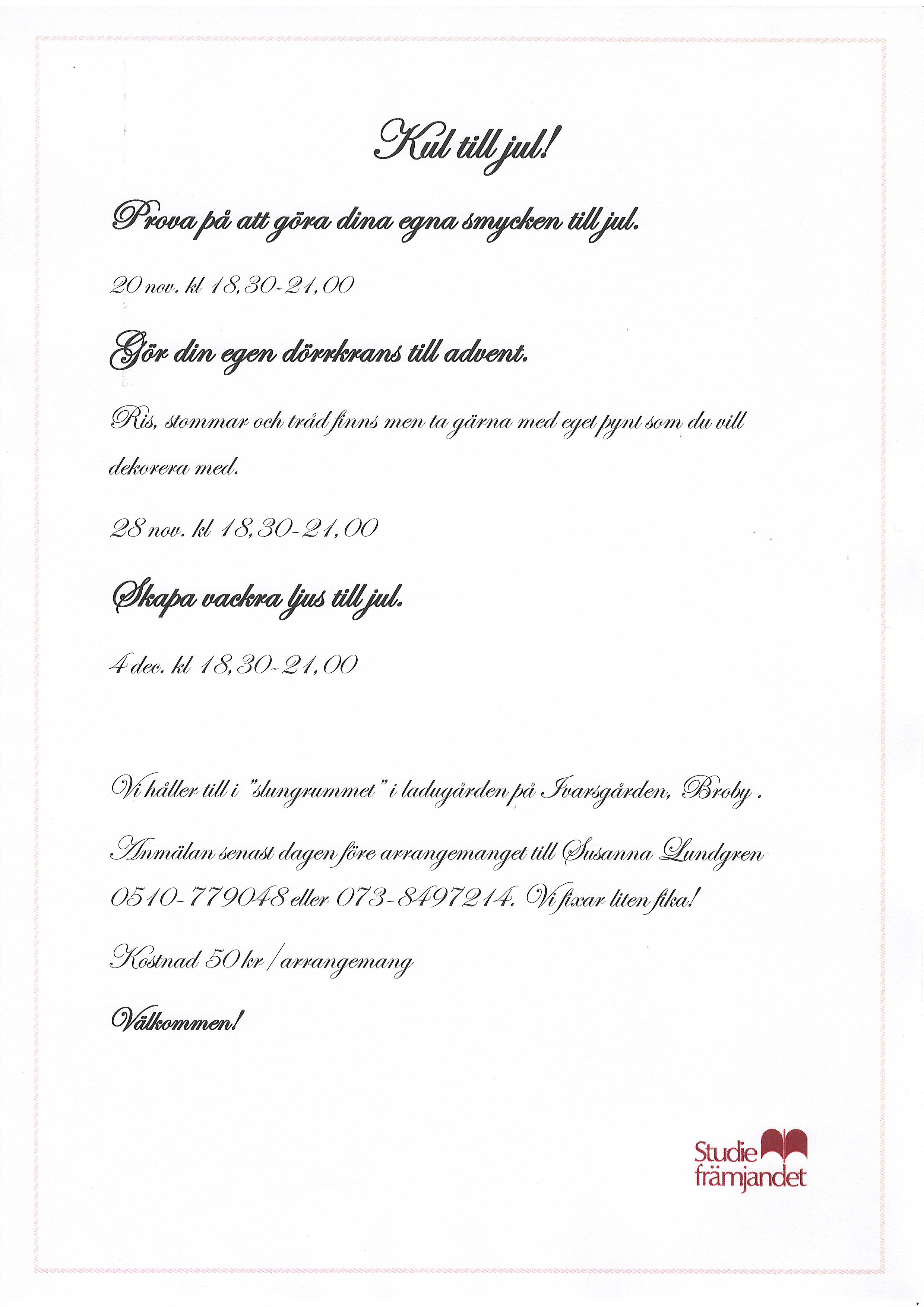 * Prova på att göra smycken den 20:e november.