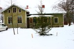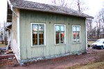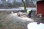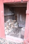 Vi rensade även ut ett av förråden i garaget och gjorde om den till vedbod. Sen bar vi ut alla meterlånga vedbitar för att klyva dem till mindre bitar. Vi trodde att detta var något som den gamla ägaren lämnat. Men vi hittade en lapp på en av vedbitarna, att detta var skickat från Mariedal-Lundsbrunns station till skolorna i Husaby kommun. Detta gick till Broby skola.