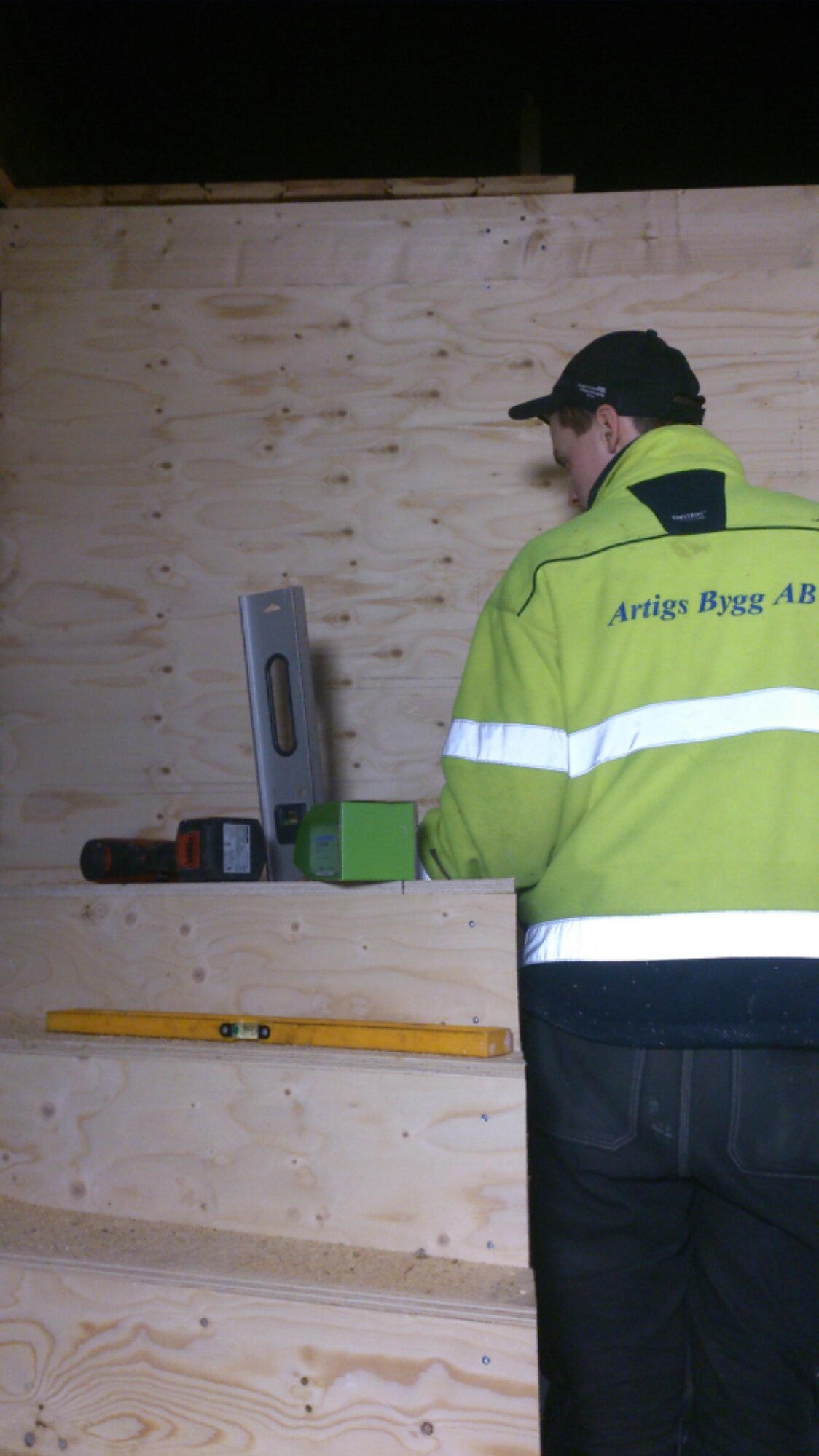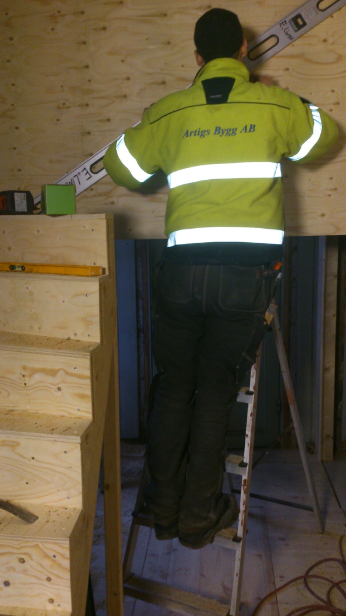 Eriks bror har byggt en trapp ner till källaren så vi ska slippa använda stege. Jätte bra, nu ska den monteras bara!