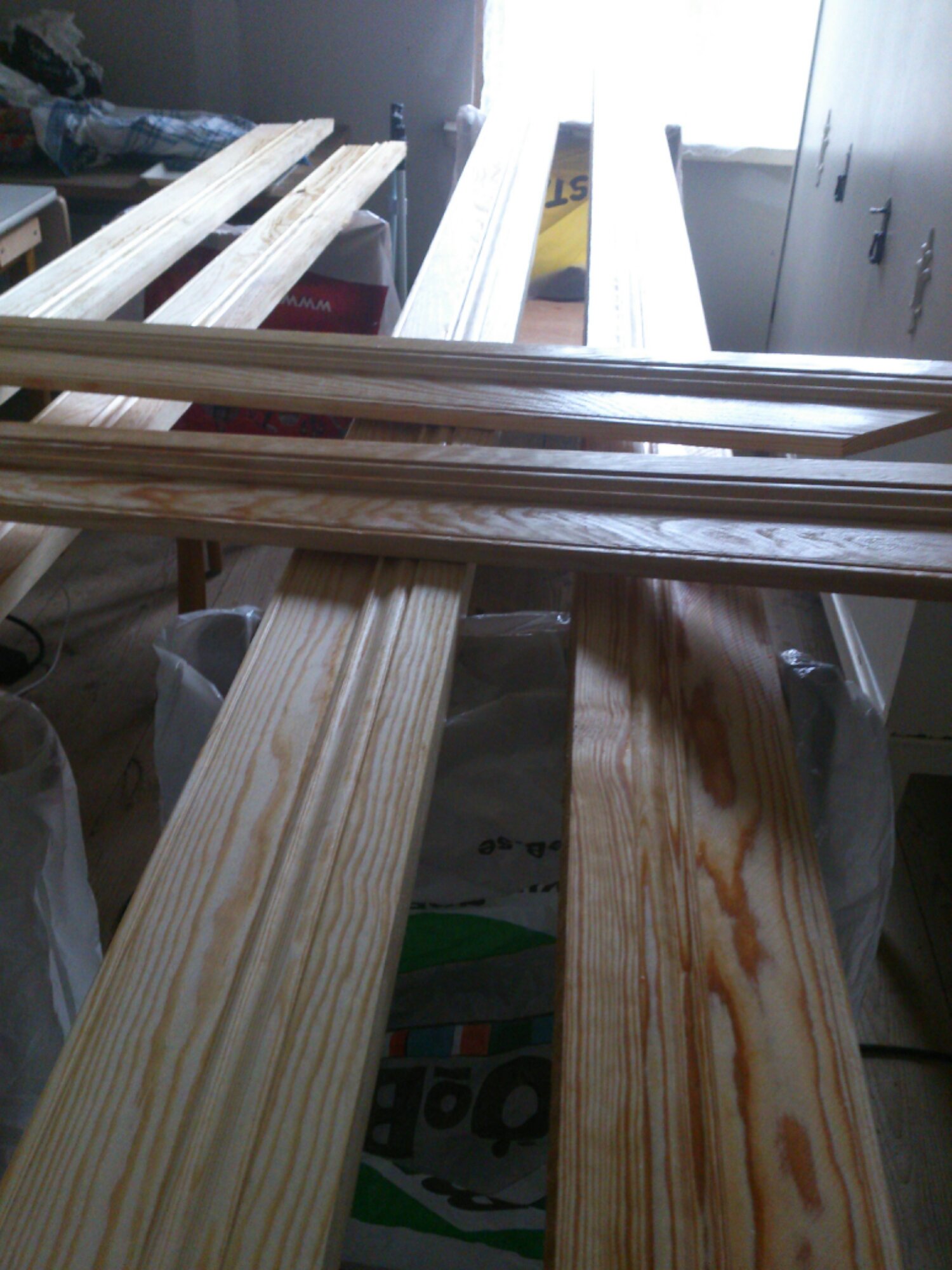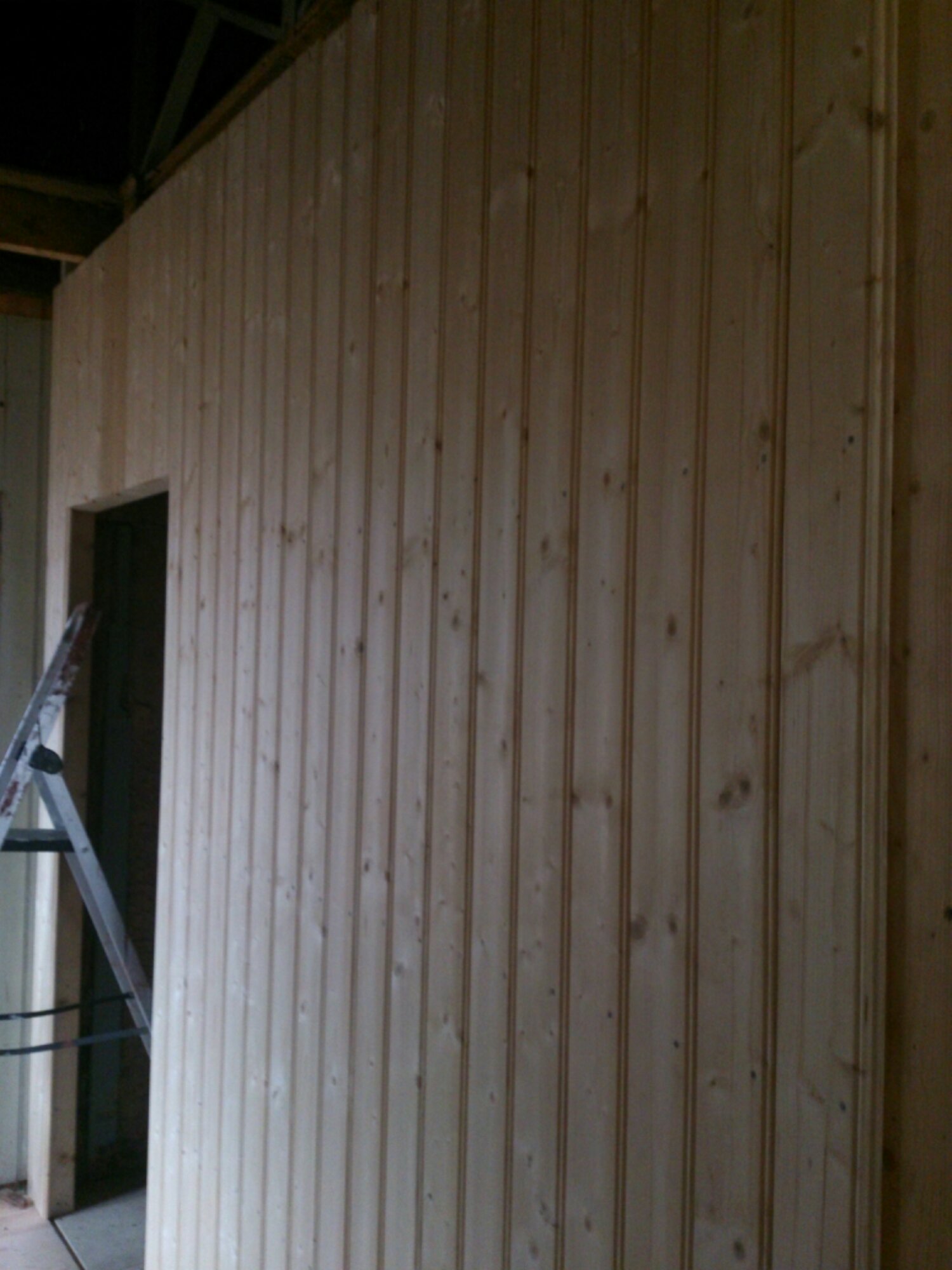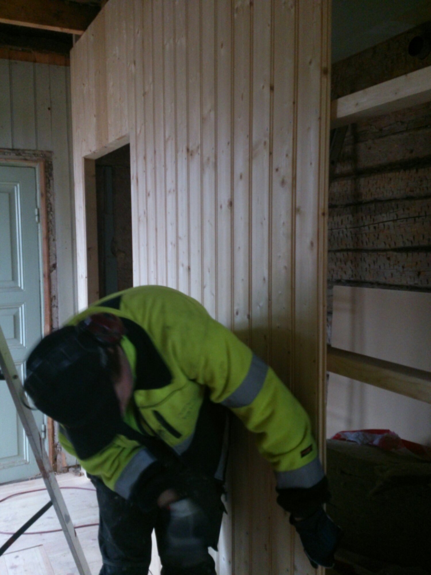 Har varit en stund och grejat nere i skolan nu på eftermiddagen. Erik har fortsatt med väggen till toaletten, det blir pärlspont. Jag har börjat måla pardörrarna som sitter i skolsalen. Vi tog ner dem och satte upp en skiva där istället. Kommer bli riktigt fint!