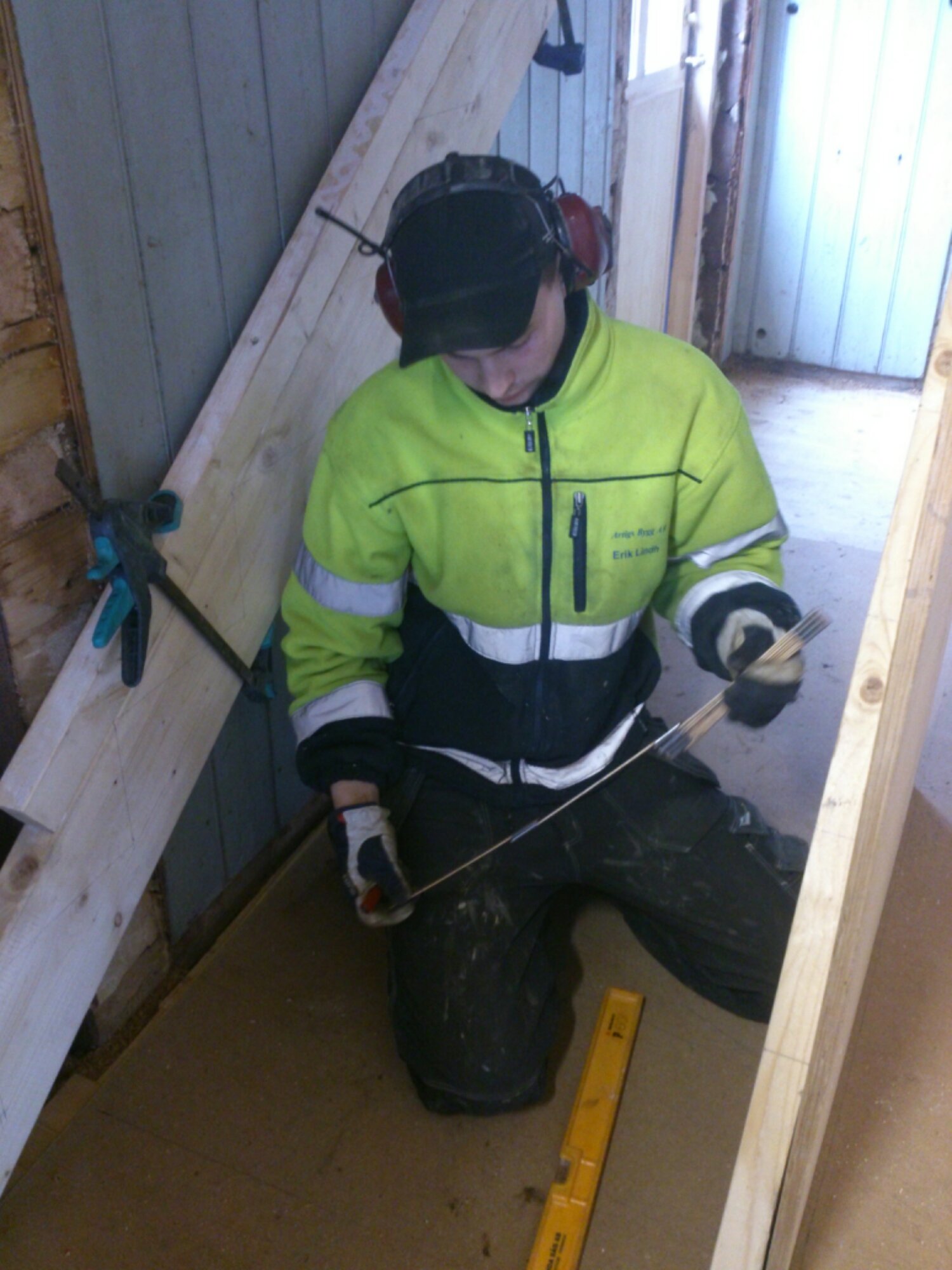 Erik ska fortsätta planera vart trappen upp till andra våning ska vara, krävs lite planering där.